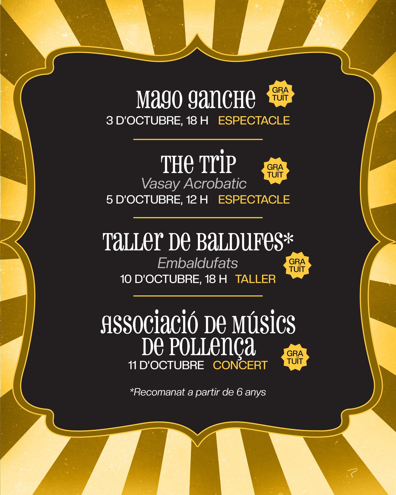 CAN ESCARRINTXO https://maps.app.goo.gl/abXXQguHAGV8mjFp6, Pollença, Illes BalearsThe Trip, el viatge, de la companyia Vassay Acrobatic, és un espectacle on en alguns dels seus visuals es donen pinzellades a diferents cultures mundials, mitjançant la fusió d’acrobàcia còmica, […]