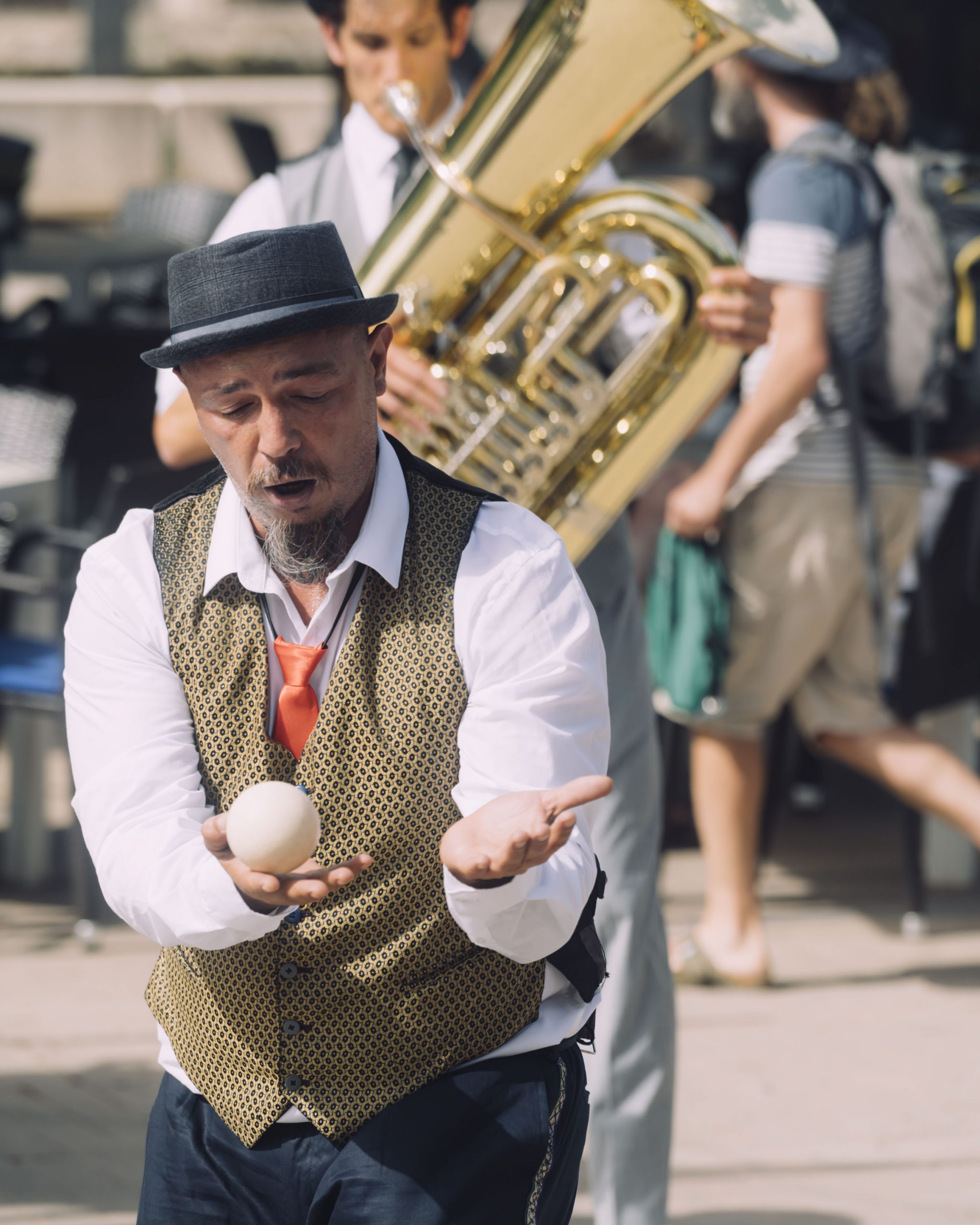 Orquestrina Vulpini és un cercavila festiu i itinerant que combina música en directe, humor visual i circ en un esclat d’energia i color. Una banda ambulant marca el ritme amb melodies populars i originals, mentre un malabarista condueix l’espectacle amb complicitat, tendresa i una gran dosi de malabars sorprenents. Amb un estil fresc i desenfadat, La Orquestina Vulpini transforma cada carrer en un escenari i cada parada en una festa improvisada. Els malabars del clown esdevenen moments clau de l’espectacle, captivant grans i petits amb la seva habilitat i humor gestual. Un espectacle participatiu, dinàmic i ple de vitalitat, que convida el públic a ser molt més que espectador: a formar part activa d’una celebració col·lectiva i inoblidable.